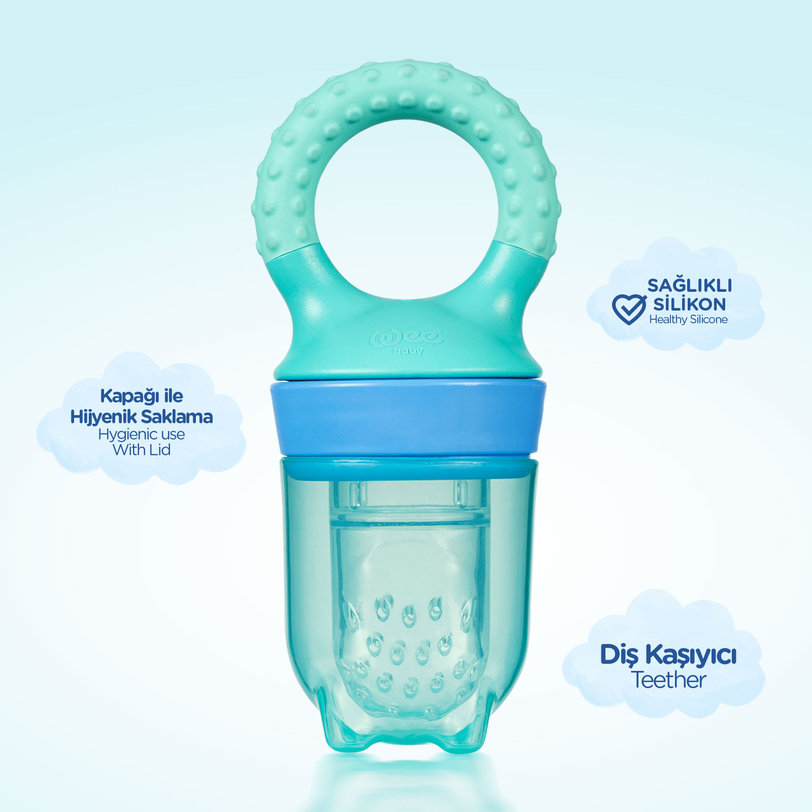 With the introduction of complementary foods, babies’ diets diversify. For healthy development, fruits and vegetables should be consumed just like in adults. Many mothers mash fruits and vegetables into purees for their babies. The perforated silicone tip of the Wee Baby Fruit Strainer allows juice from inserted fruits and vegetables to be safely consumed by the baby. It helps babies get familiar with fresh fruit from the early months, supporting nutrition while minimizing choking risks.